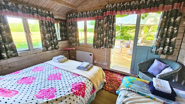 Our cabins each offer their own unique take on the glamping experience - characterful and cosy, designed to bring the outside in with windows that frame the ever changing landscape. The Glade: Tucked in a quiet woodland corner, perfect for small groups combining cabins & camping. Can accomodate up to 7 in the Cabins and an additional 16 camping. Woodmans: A family-friendly space, ideal for up to 6 guests, with a rustic, home-from-home feel. Avalon: Our most spacious cabin area designed for larger gatherings, with plenty of open meadow and the option to add camping alongside. Up to 5 in the cabins and 40 camping. Honeycomb: Intimate and charming - our most romantic cabin, made just for couples seeking peace and privacy.
